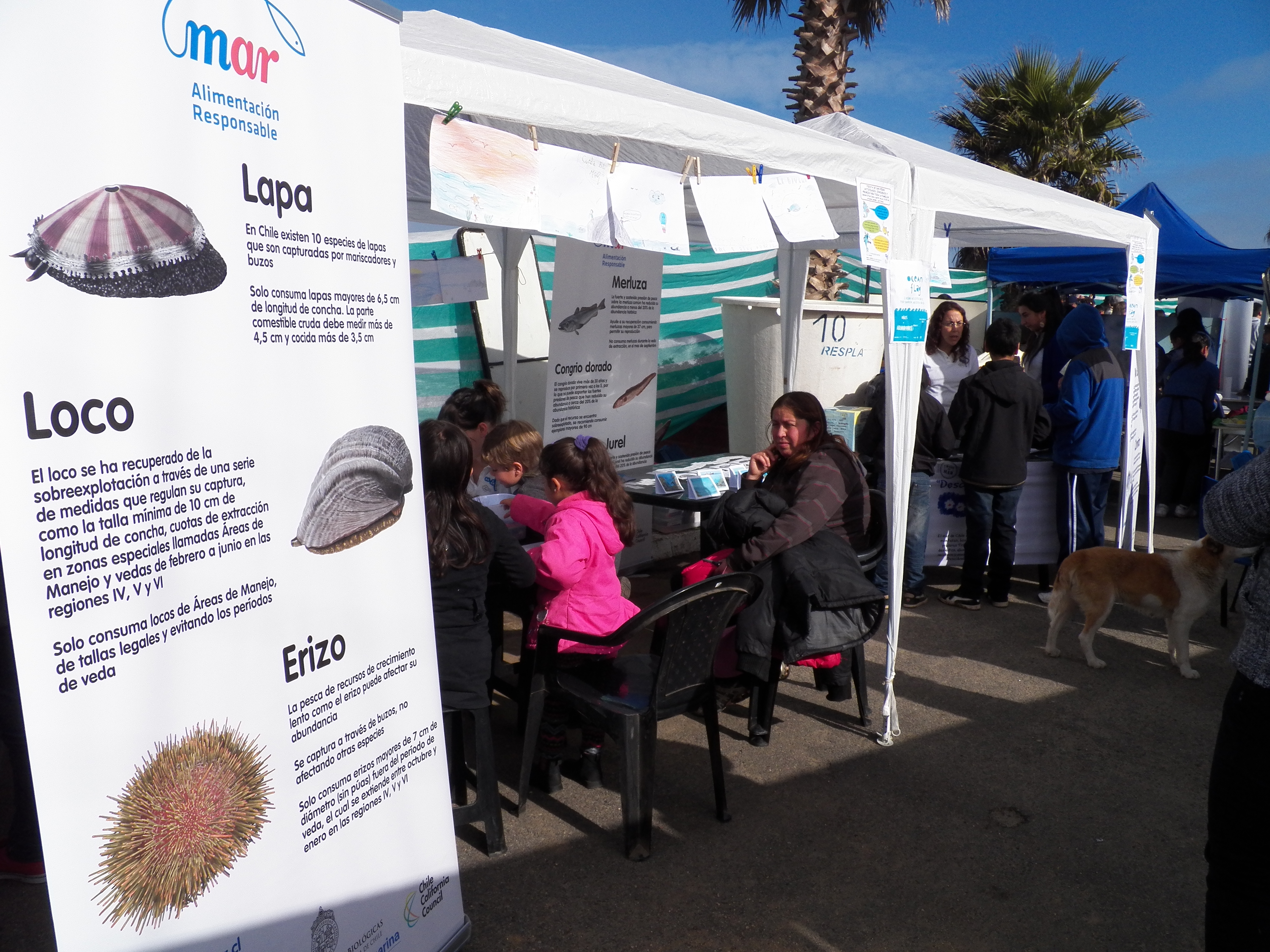 Junto con la música y la comida, los visitantes pudieron recorrer los diversos stands dispuestos en la costanera, entre ellos el del Centro de Conservación Marina. Los investigadores presentaron iniciativas para proteger las especies de nuestra costa y realizaron juegos educativos para los pequeños. Miriam Fernández, directora de la institución, comentó que “estamos muy contentos de haber sido invitados a participar de esta fiesta y compartir con la gente de Las Cruces, porque es con ellos que desarrollamos nuestra labor. Llevamos mucho tiempo trabajando con las mariscadoras, con artistas que viven en Las Cruces y nuestras puertas están abiertas para los colegios y la comunidad”.